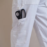 - Painter's trousers made from pre-shrunk absorbent cotton drill fabric