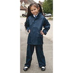 R225J Core junior rain suit Fully taped seams, windproof Integrated elasticated hood 2 spacious front pockets Fabric 190T 100% StormDri 2000 polyester with PVC coating.