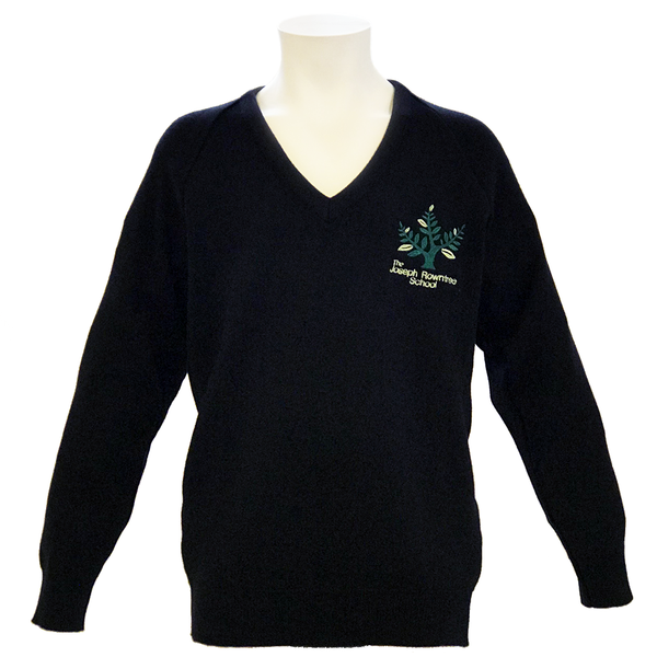 A V-neck black jumper with Joseph Rowntree badge embroidered on the left breast. Available in 30" up to 46".